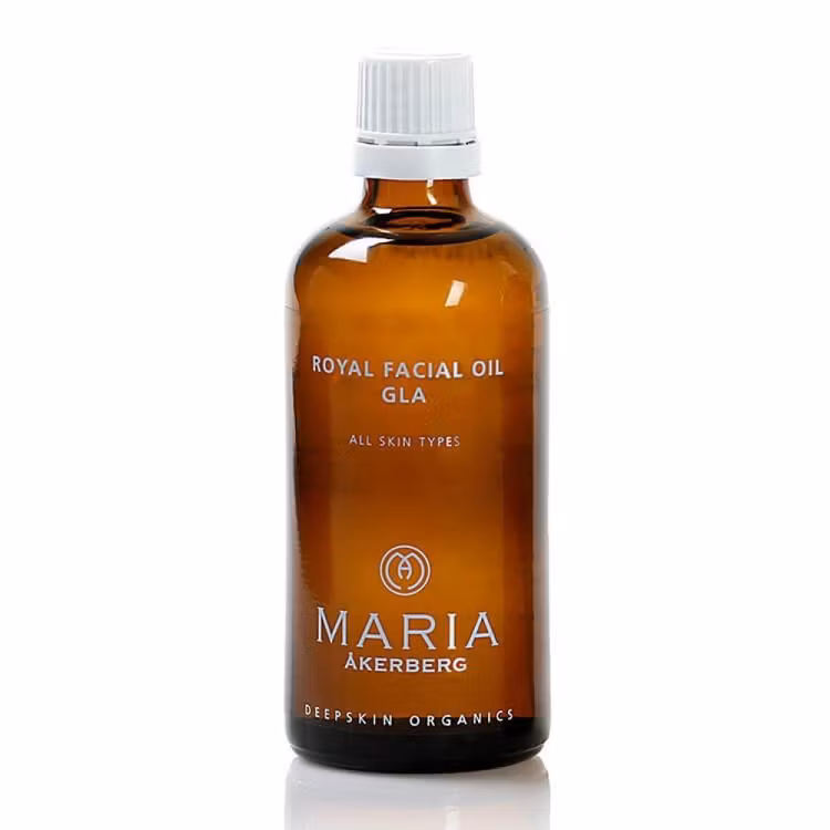 Maria Åkerberg Royal Facial Oil GLA är en utslätande ansiktsolja som passar för alla hudtyper. Den ger en utslätande effekt, mest märkbart på äldre eller torr hud. Oljan hjälper huden vid årstidsväxlingar när luftfuktigheten ändras och huden behöver vänja sig vid de ändrade förhållandena.