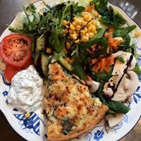 Det ingår blandsallad med grönsaker och tzatsiki till alla matpajer.